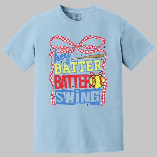 Hey Batter Batter Softball Coquette Bow T-Shirt